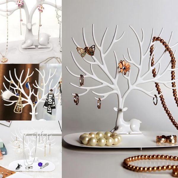 🦌 Elegância inspirada nos veados: Este cabide de jóias inspira-se na forma graciosa de um veado, com chifres lindamente ramificados que servem um duplo propósito. Os ramos dos chifres fornecem uma solução elegante e prática para organizar e exibir seus colares, pulseiras e muito mais.