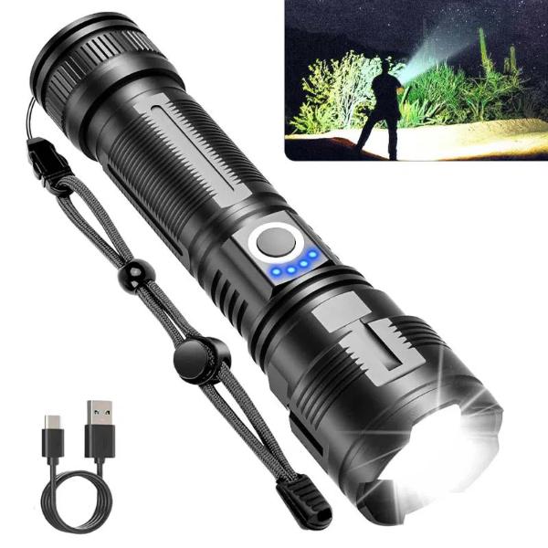 A bateria recarregável e resistente garante uma utilização prolongada, permitindo que a lanterna funcione durante horas seguidas.