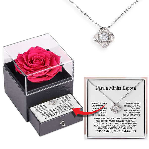 Além do colar, você também recebe LIVRE uma caixa de presente com uma inebriante rosa vermelha.🌹