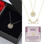 - O design magnético permite que o colar se combine em um trevo de quatro folhas.