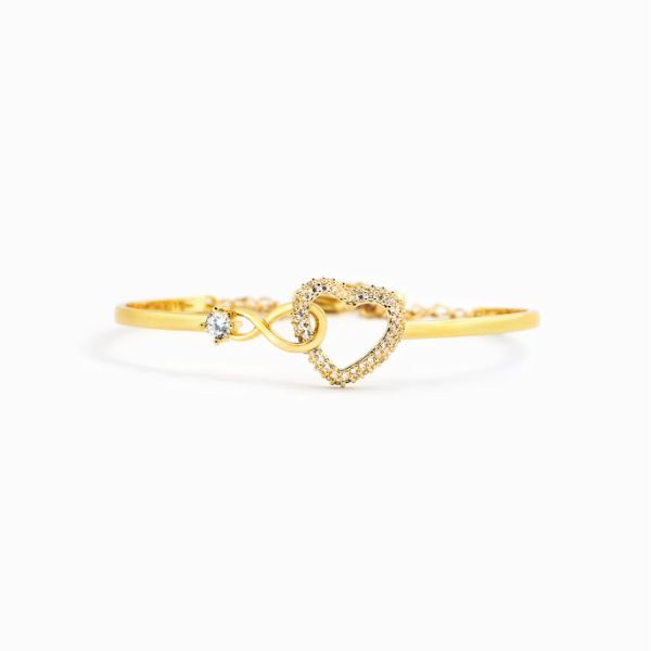 A pulseira combina um símbolo do infinito com um motivo de coração, representando o amor eterno e a conexão inseparável.