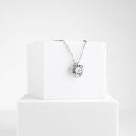 O colar é feito em aço inoxidável para extrema durabilidade, com banho de ouro branco 14K que lhe confere um brilho sofisticado e luxuoso. Esta combinação proporciona durabilidade e elegância que durarão anos.